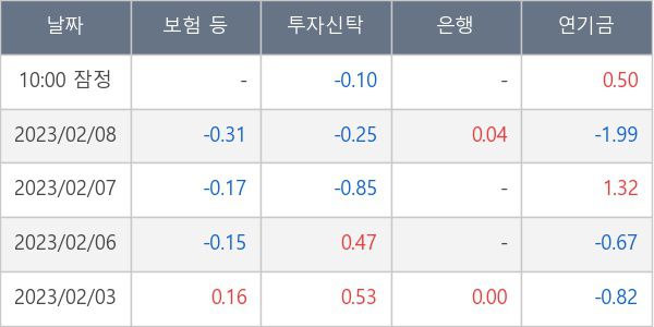 [표] 주요 기관별 순매매량 (단위 만주)