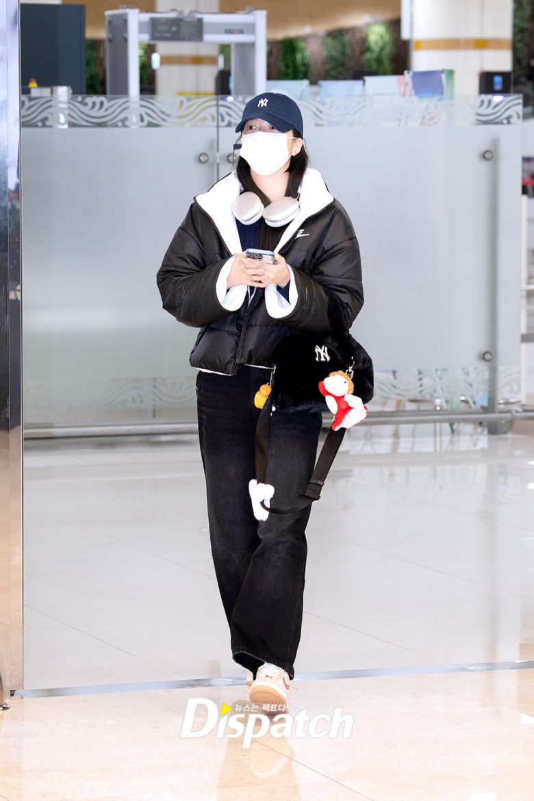 홍은채는 이날 블랙진에 숏패딩을 매치해 수수한 공항패션을 연출했다. 러블리한 미모도 돋보였다.