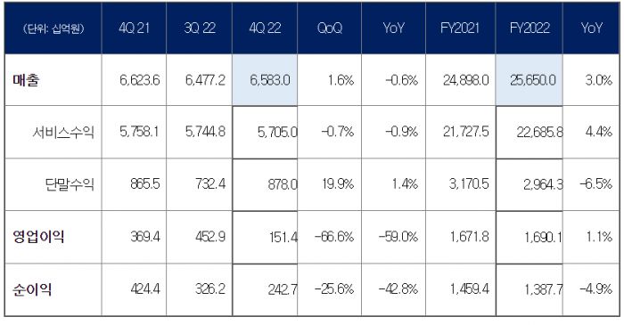 유·무선 사업(Telco B2C)은 5G 가입자 845만명으로 핸드셋 기준 전체 가입자 의 62%를 기록하며 프리미엄 가입자 중심의 견조한 성장세를 유지했다. 또한 코로나19 확산세 완화로 해외 여행객이 늘어나며 로밍 사업 매출이 회복세를 보였다. 홈 유선전화는 가정용 가입자 감소로 전년 대비 4.4% 매출 감소했다. 초고속인터넷은 고품질 인터넷 서비스에 대한 지속적인 수요 증가로 기가인터넷 판매 비중이 증가해 매출이 전년 대비 3.3% 늘었다.