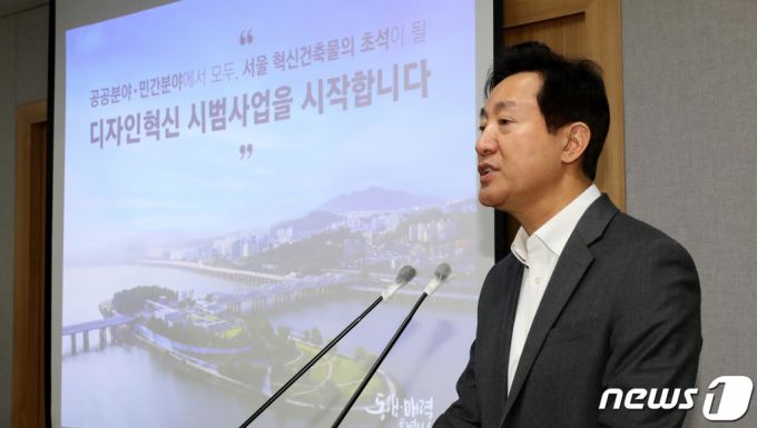 오세훈 서울시장이 9일 서울의 디자인 혁신을 위한 '도시·건축 디자인 혁신방안'을 발표하고 있다. /사진=뉴스1 |