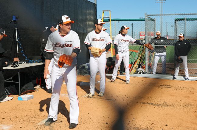 하루 아침에 바뀔 수는 없다. 그래도 방향을 잡고 추구하면 결과가 나오기 마련이다. 이날 베테랑 포수 최재훈은 김정민 코치에게 배운 프레이밍을 활용하며 쉬지 않고 투수들의 공을 받았다. 입단 동기 문동주와 박준영은 140㎞ 후반대 하이 패스트볼, 그리고 하이볼과 짝을 이루는 커브와 슬라이더를 던졌다.