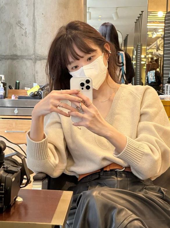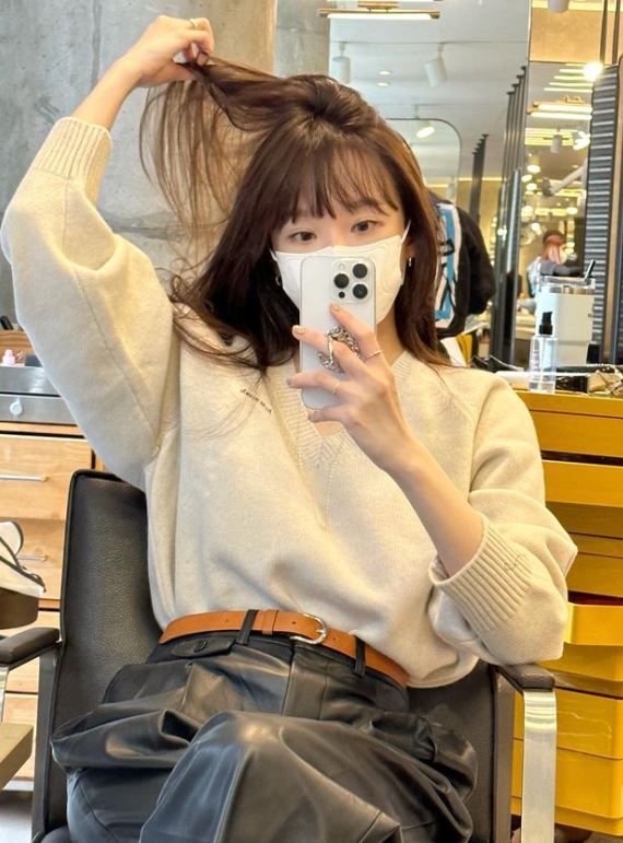 이번에 공개된 사진에는 미용실에서 앞머리를 자른 듯한 모습의 강민경이 담겨있다. 강민경은 마스크를 쓰고 있는 모습으로 머리를 들어보이며 앞머리를 잘랐음을 알렸다.