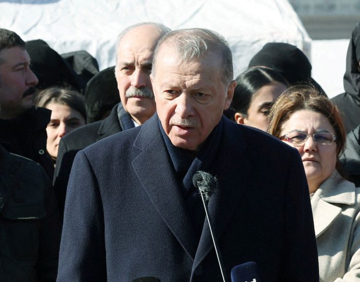 지진 발생 사흘째인 8일(현지시간) 튀르키예에서 정부의 늑장 대응을 두고 비판 여론이 거세지고 있다. 하지만 이날 레제프 타이이프 에르도안 대통령은 지진 발생 후 처음 찾은 재난 현장에서 “이런 지진은 대비를 할 수 없다”면서 정부에 대한 허위비방을 탓했다.