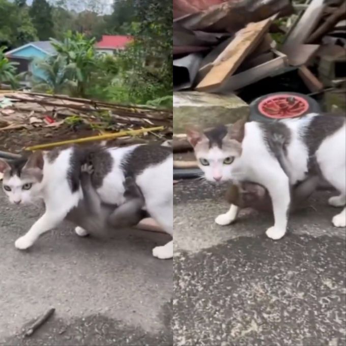 8일(현지시간) 뉴욕포스트는 지난달 말 트위터에 올라온 한 편의 영상을 소개했다. 말레이시아에서 촬영된 이 영상에는 고양이 한 마리가 태어난 지 8개월 된 원숭이 한 마리를 배에 매단 채 길을 배회하는 장면이 담겼다.