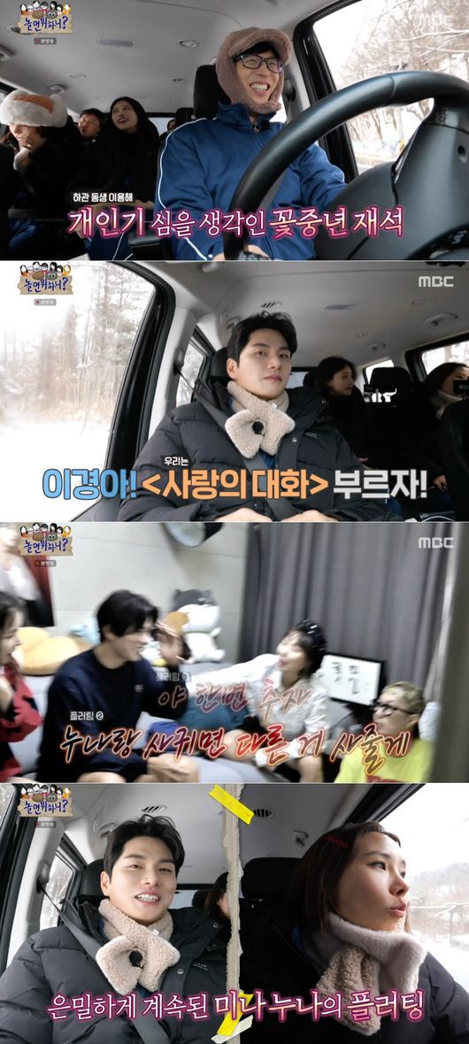 그러나 '놀뭐'에 러브라인은 이뿐 만이 아니었다. 이이경과 이미주가 비즈니스 러브라인으로 얽혀있었기 때문. 유재석은 "이경이는 미나가 자기한테 마음이 있다고 생각하고, 또 미주는 이경이가 자기한테 마음이 있다고 생각하고 있다"라며 웃었다. 이에 이미주는 곧바로 "저 오빠(이이경) 나 좋아한다"라고 받아쳐 웃음을 더했다.