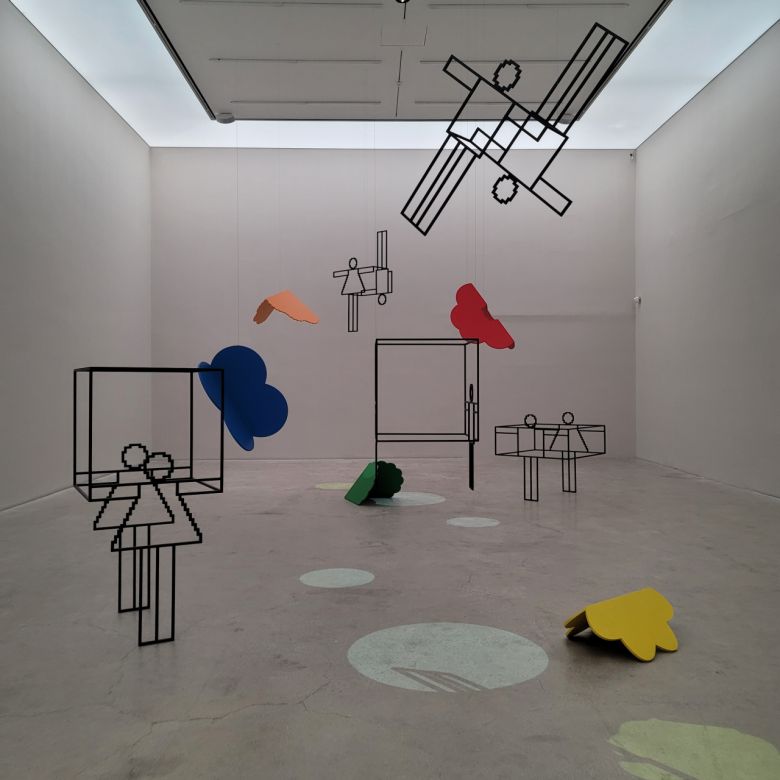 예측 불가능은 홍승혜 작업의 주요 키워드다. 국제갤러리 3관엔 무도회가 펼쳐졌다. 픽토그램 인형들이 짝을 지어 춤을 추고, 알록달록한 조명이 바닥을 비춘다. 형형색색의 꽃과 음악이 깔렸다. 그는 “나의 작업은 예측 불가능하지만, 그 결과물은 결국 다 내 안에 있던 형태들”이라며 “유기적인 형태들이 이곳에서도 보인다”고 말했다. 한층 자유로워진 ‘유기적 기하학’이다. 3월 19일까지.