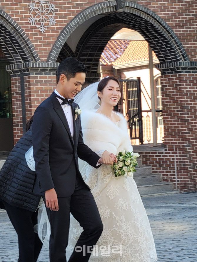 0일 서울 중구 명동성당에서 정태영 현대카드 부회장의 아들인 정준(왼쪽)씨와 프로골퍼 리디아 고가 결혼식장에 입장하고 있다. (사진=유은실 이데일리 기자)