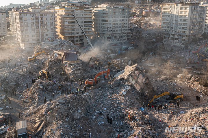 [카라만마라슈=뉴시스] 권창회 기자 = 12일 오후(현지시간) 튀르키예 카라만마라슈주 일대 지진피해 현장에서 구조 및 복구작업이 진행되고 있다. 카라만마라슈주는 이번 튀르키예 지진 2차 진앙지이다. 2023.02.13. kch0523@newsis.com