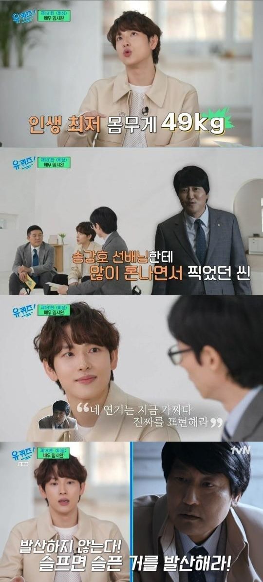 임시완은 "대선배님을 뵙는 자리 같은 어려운 자리도 잘 불러주신다. 심지어 봉준호 감독님을 소개시켜주셨다. 은연 중 만나시는 선배님들이 '송강호 선배님이 네 칭찬을 너무 많이 해주셨다'고 하기도 했다. 그런데 단둘이 술자리에 있으면 말씀을 한 마디도 안하신다"고 밝혔다.
