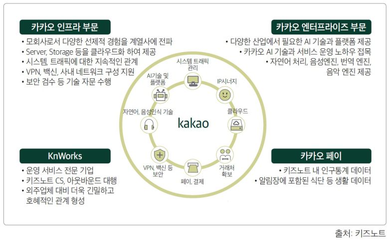 모기업인 카카오 역시 키즈노트 인수를 통해 유아교육 콘텐츠를 연계하여 계연사들과의 상승효과를 기대하고 있었다.