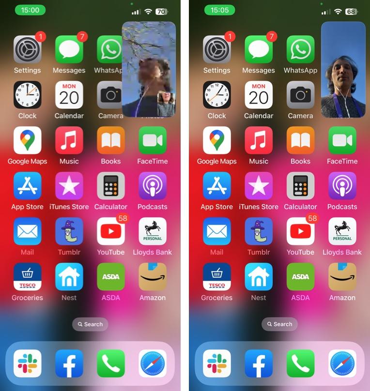 이 과정은 페이스타임 영상 통화와 거의 비슷하다. 몇 가지 차이점은 와츠앱은 전체 창이 줄어들어서 작은 창 안에 자신을 비추는 카메라 영상도 들어 있다는 것, 그리고 페이스타임은 전화 상대방의 얼굴이 보이는 화면만 줄어든다는 점이다. 또 영상 품질 자체는 페이스타임 영상통화가 훨씬 부드럽다. 그럼에도 많은 사용자가 즐겨 쓰는 와츠앱 앱에서 화면 속 화면 기능을 늦게나마 도입한 것은 환영할 만한 일이다.