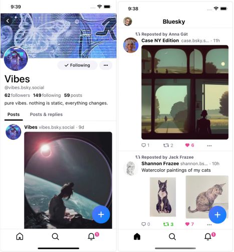 앱 설명란에 나타난 블루스카이의 모습은 트위터와 매우 유사한 모습을 띠고 있다. 트위터만의 독특한 기능인 ‘리트윗(retweet, 다른 사람의 글을 본인의 타임라인에 그대로 게시하는 것)’ 기능도 ‘리포스트(repost)’라는 이름으로 그대로 들여온 모습이다.