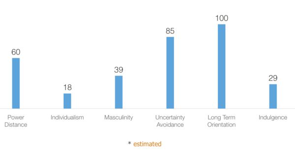 다섯번째 차원, 장기-단기적 지향성(LTO)이다. 장기 지향성인 문화에선 몇 달이나 몇 년 단위의 장기 계획을 세우는 편이고 지금 당장보단 나중의 만족을 위해 현재는 인내하고 노력하는 성향을 띤다.