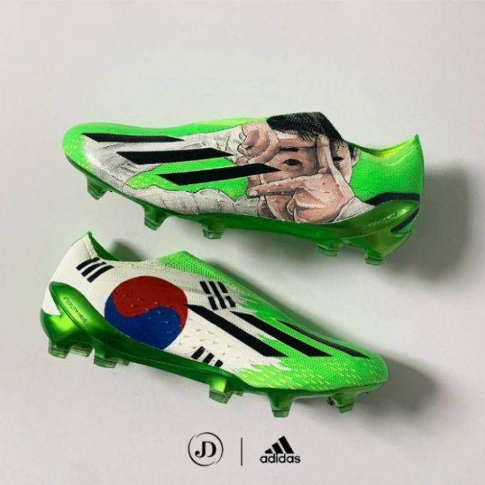 축구화는 신발 전문 아티스트 조던 도슨이 제작한 것으로, 손흥민이 착용하는 아디다스X 스피드포털 제품이다. 축구화 오른쪽엔 태극기 그림을 넣었고, 왼쪽엔 손흥민의 트레이드 마크인 '찰칵 세리머니'를 새겼다.