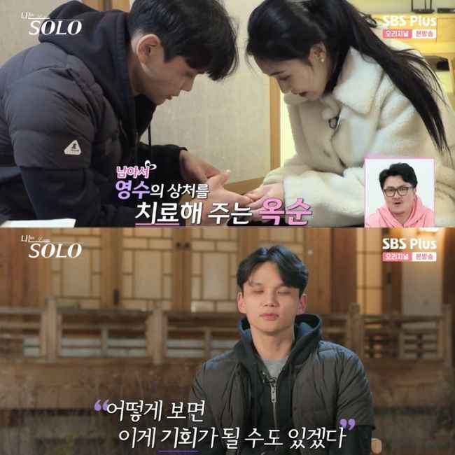 계속해서 영수는 앞서 다친 자신을 걱정해준 옥순을 떠올리며 그를 선택했다. 그러면서 “딱 보면 도도해 보인다. 그런데 걱정해 주는 모습에서 인간미를 느꼈다. 그런 부분에 있어서 좀 약한 편이다. 어떻게 보면 마지막까지 남아서 챙겨준 고마움의 표시로 옥순 님을 선택했다”라고 이유를 밝혔다.