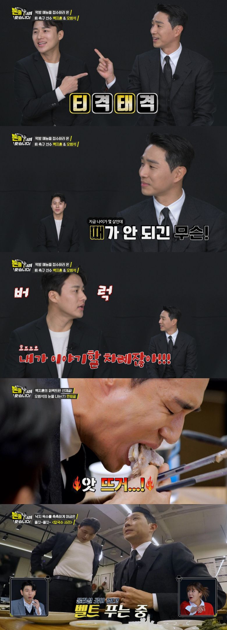 이날 스페셜 먹요원으로는 전 국가대표 축구선수 백지훈, 오범석이 등장한다. 두 사람은 '30년 지기'답게 시종일관 서로를 타박해 웃음을 자아낸다.