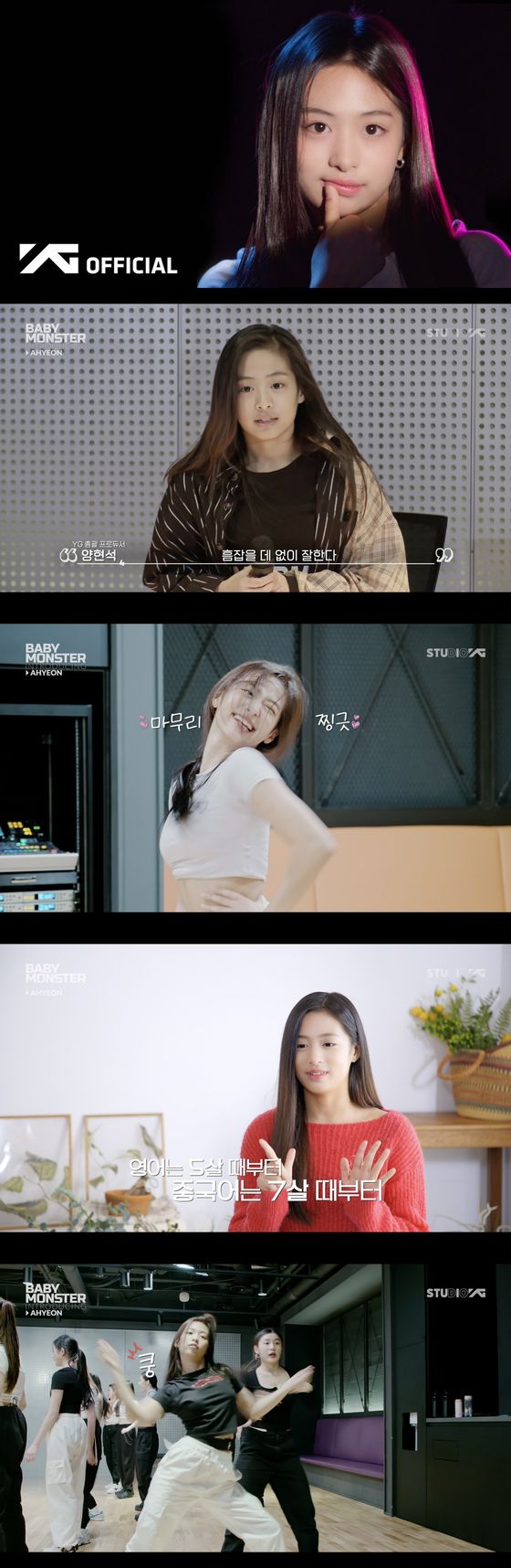YG엔터테인먼트는 27일 0시 공식 블로그에 '베이비몬스터 - 인트로듀싱 아현(BABYMONSTER ? Introducing AHYEON)'을 업로드, 루카·파리타·로라·아사·치키타에 이어 여섯 번째 주인공인 15세 한국 연습생 아현을 소개했다.