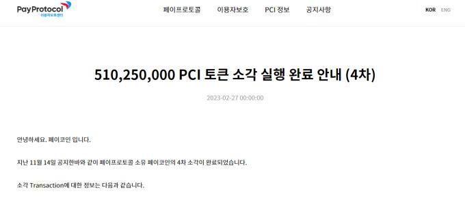 페이코인의 발행사 '페이프로토콜'(Payprotocol AG)은 앞서 작년 11월, 4회에 나눠 자사 보유 페이코인(PCI)의 약52%에 해당하는 물량(20.41억개)을 자체 소각하겠다고 발표한 바 있다.