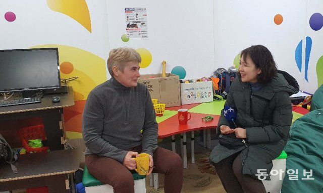 인터뷰를 위해 들어선 아이들 놀이방엔 유니세프 등에서 지원한 장난감만 쌓여 있었다. 러시아군의 폭탄에 남편을 잃은 류보프 악세노바 씨는 “단전과 혹한으로 어린 자녀가 있는 사람들은 추위를 견디지 못하고 떠났다”고 했다. 가건물로 조립된 거주지는 전력 부족으로 절반 이상이 어둑어둑했다.