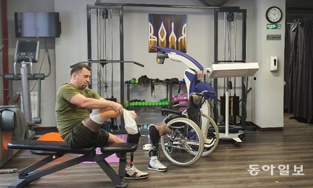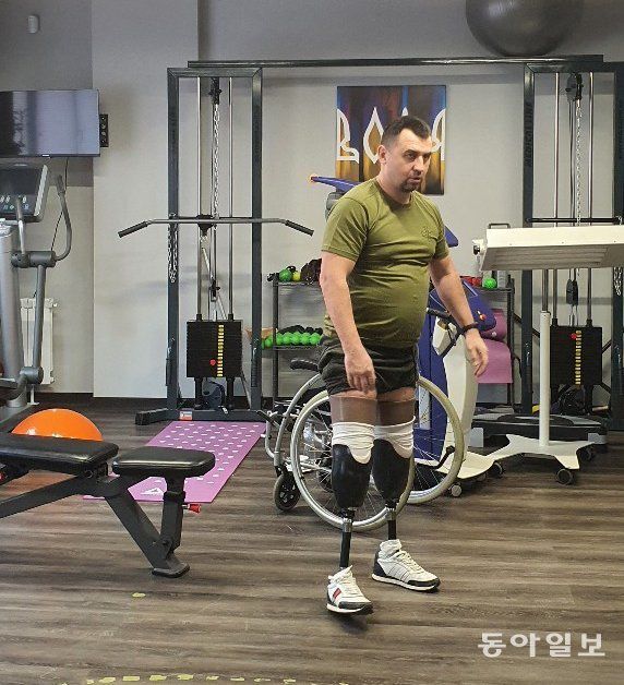 11일(현지 시간) 토요일 오전 9시가 안 된 이른 아침. 키이우 도심에 있는 재활병원은 붐볐다. 군복 입은 건장한 군인들이 목발이나 휠체어에 기대 드나들고 있었다. 이들 속에서 두 다리를 잃은 아르템 씨가 나타나자 이곳이 전쟁터란 사실이 확 와 닿았다.