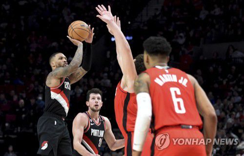 (서울=연합뉴스) 안홍석 기자 = 데이미언 릴러드가 무려 71점을 쓸어 담은 미국프로농구(NBA) 포틀랜드 트레일블레이저스가 휴스턴 로키츠를 완파하고 '플레이 인 토너먼트' 진출을 향한 도전을 이어갔다.