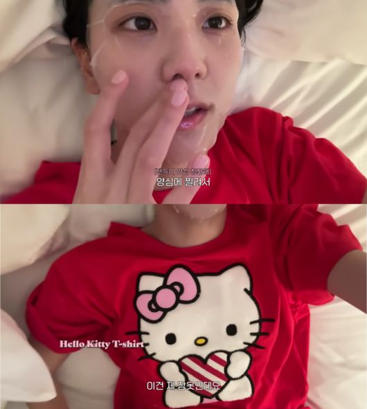 그러더니 지수는 고양이 캐릭터가 그려진 잠옷을 소개하며 "젠득이가 이걸 보고 지나가면은 도저히 양심에 찔려서 사줬는데 옷이 엄청 커서 잠옷으로 입고 있다"고 알렸다.