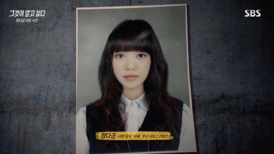 14년 전 부산 금정구의 한 고등학교에서 발생한 이른바 ‘정다금 사망 사건’과 관련 가해자들로 추정되는 학생들의 근황이 알려졌다. SBS '그것이 알고 싶다' 캡처