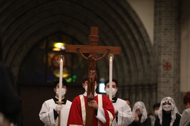 [서울=뉴시스] 천주교 교회는 '주님 수난 성금요일'인 2022년 4월15일 주님 수난 예식을 거행한다. 예식 중 입당하는 모습.(사진=천주교 서울대교구 제공) 2023.03.03. photo@newsis.com] *재판매 및 DB 금지 |