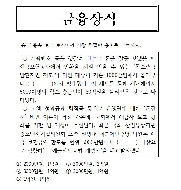 정답은 4번 ‘5000만원, 1억원’입니다.