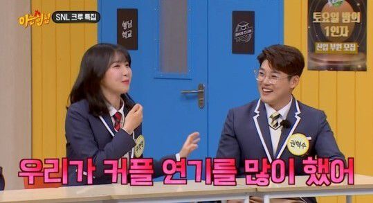 주현영은 ‘따로 만났냐’는 질문에 웃으며 “우리가 커플 연기를 아주 많이 했다”라며 “그래서 ‘SNL’ 안에서 소문이 났더라. PD님도 나한테 오셔서 솔직하게 얘기하라고 물어보시는데 우리는 이 상황이 그냥 재밌다”고 해명했다. 권혁수도 “(PD가) 나한테도 그런 적 있다”고 덧붙였다.