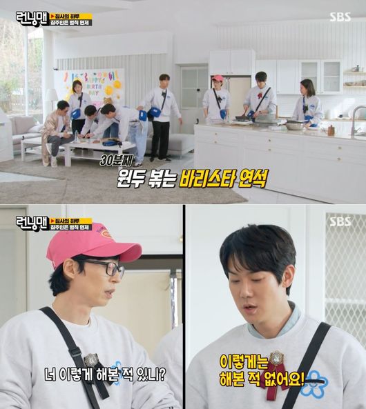 차태현은 로스팅 원두 대신 생두, 그라인더 대신 맷돌 등을 선택해 코인을 남겨 갈취했다. 이에 유연석이 프라이팬에 생두를 볶고, 김종국이 휘핑크림을 만들기 위해 손으로 거품기를 젓는가 하면, 차태현과 송지효가 바나나 브륄레를 만들기 위해 토치를 들었다.