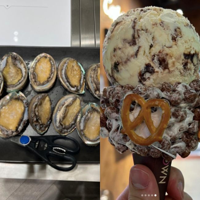 이어진 사진에서는 비가 먹음직스러운 음식 사진을 나열해 시선을 사로잡았다. 그는 스테이크를 시작으로, 전복, 그리고 후식으로 아이스크림까지 공개했다.