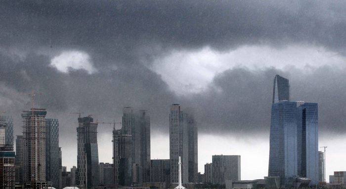 서울울 포함한 전국적인 부동산 침체가 이어지는 가운데 인천 송도 지역의 고층빌딩을 휘감고 있는 먹구름이 현 상황을 나타내는 듯 하다. [김재훈 기자] |
