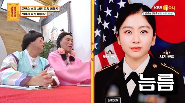 한나씨는 "저는 데이팅 앱을 쓴 적도 쓸 계획도 없다. 제 사진이 있는 계정이 금전적 요구를 한다면 절대 믿지 말아 달라"고 당부했고, 이수근도 "돈은 열심히 일해서 벌어라"는 말을 보탰다.