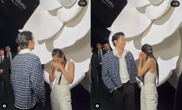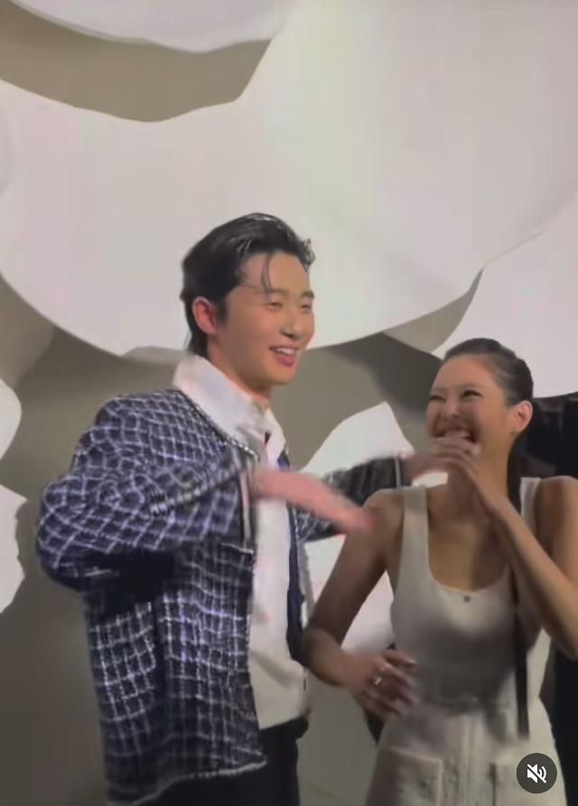 그룹 블랙핑크 제니와 배우 박서준이 샤넬 쇼에서 다정한 모습을 선보였다.