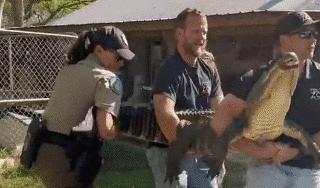 텍사스 공원·야생동물부 산하 사냥감시국은 6일(현지시간) 페이스북에 “최근 악어의 이주를 도와준 ‘애니멀 월드 앤드 스네이크 팜 동물원’에 특별한 감사의 뜻을 표한다”며 동물원 직원들이 대형 악어를 옮기는 모습이 담긴 동영상을 게시했다.