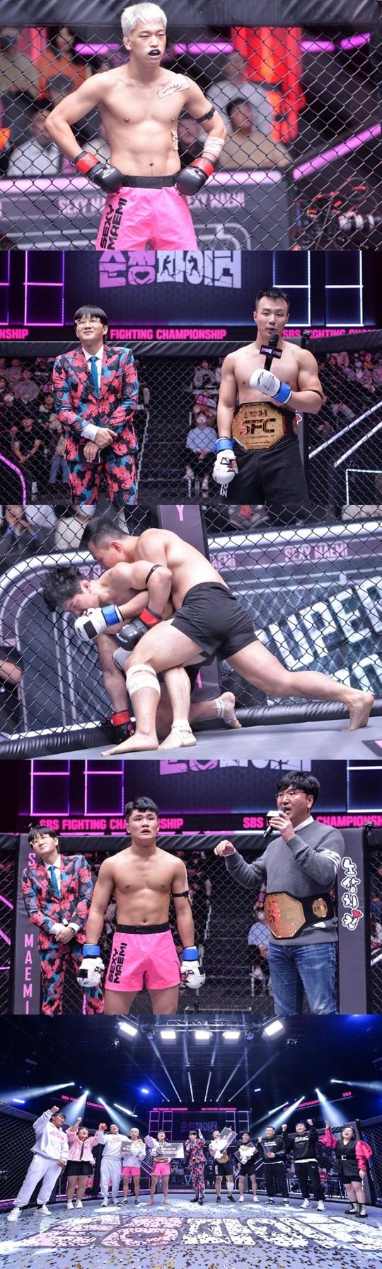 지난 8일 방송된 SBS 예능프로그램 ‘순정파이터’에서는 경량급 천안짱, 중량급 수원들소가 SFC 챔피언 벨트를 차지하면서 우승의 기쁨을 안았다. 두 사람은 각각 샌드백과 만원 엄태구를 상대로 뚝심 있는 플레이로 보는 이들을 열광시켰다.