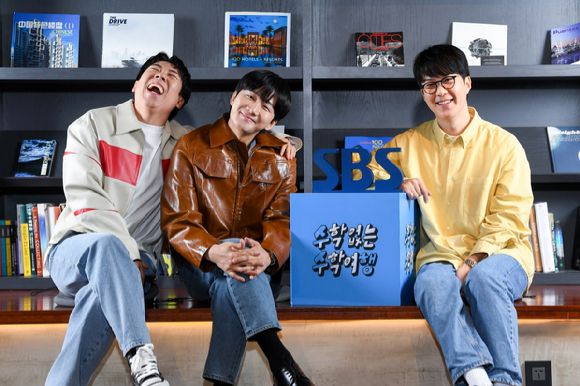 최보필 PD, 방송인 이용진 양세찬이 9일 서울 마포구 합정동 모처에서 열린 SBS 새 예능 '수학 없는 수학여행' 제작발표회에서 포즈를 취하고 있다. [사진=SBS]