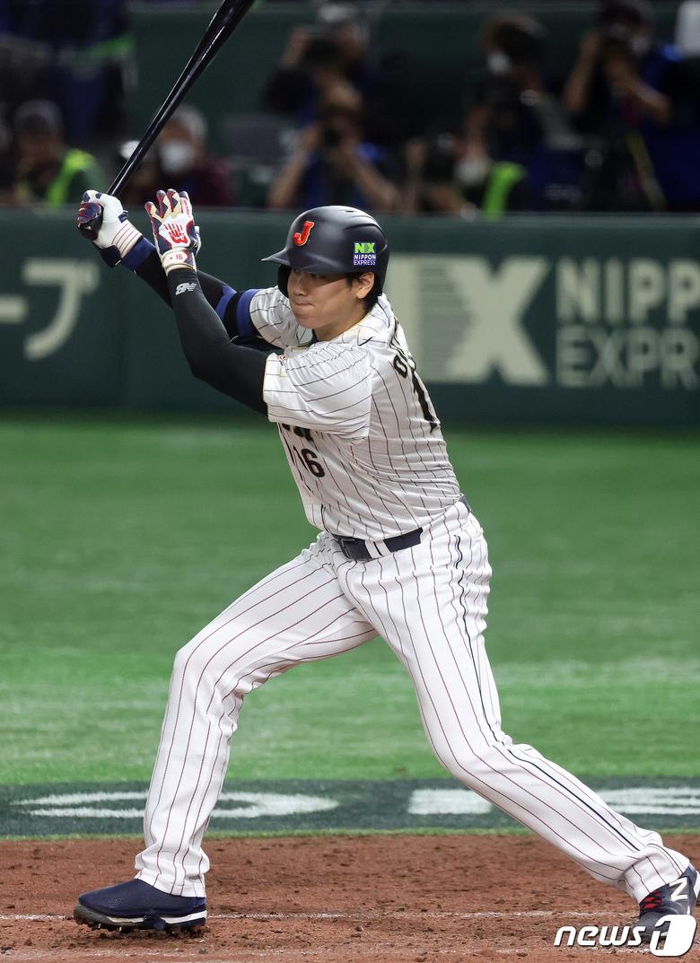 (도쿄(일본)=뉴스1) 김진환 기자 = 9일 오후 일본 도쿄돔에서 열린 2023 월드베이스볼클래식(WBC) B조 1라운드 중국과 일본의 경기, 일본 대표팀 오타니가 2회말 2사 만루 상황에서 땅볼을 치고 있다. 2023.3.9/뉴스1
