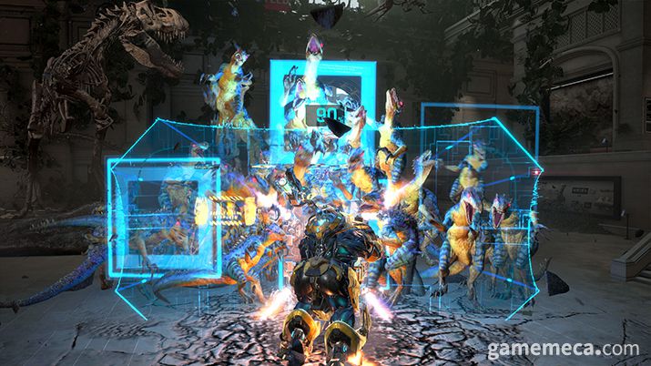 ▲ 슈트로 무장하고 공룡과 싸운다 (사진출처: 엑소프라이멀 스팀 공식 페이지)