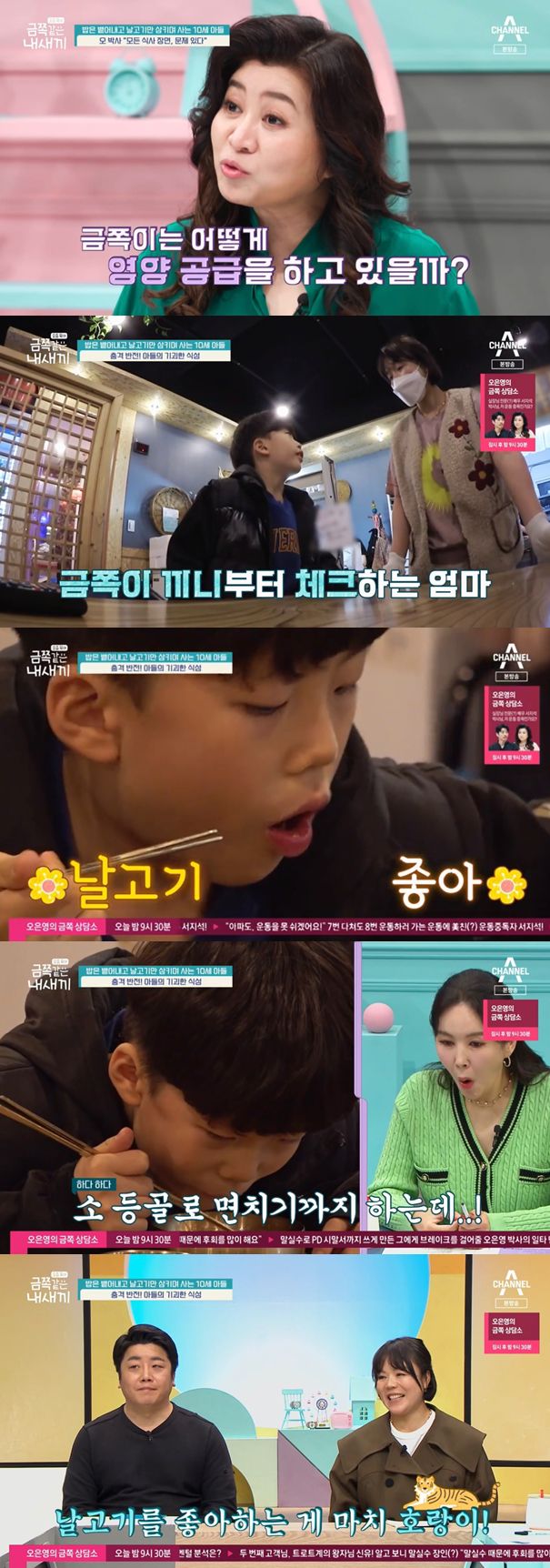 10일 방송된 채널A '요즘 육아 - 금쪽같은 내새끼'(이하 '금쪽같은')에서는 밥은 뱉어내고 날고기만 삼키며 사는 10세 아들의 사연이 전파를 탔다.