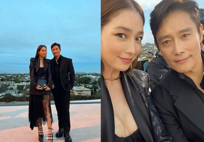 이민정은 지난 11일 개인계정에 "패션쇼 #2023 #LA"라고 적으며 남편 이병헌과 함께 패션쇼장에 참석한 모습을 담은 여러 장의 사진을 올렸다. 두 사람은 블랙드레스와 슈트로 차려입고 자태를 뽐냈다.