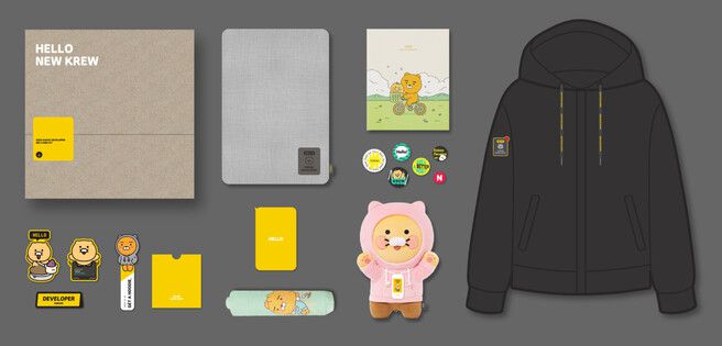 카카오도 올해 신입 개발자 공개채용 최종합격자에게 입사 선물을 제대로 하기 위해 웰컴 키트의 수준을 높였다. 카카오가 지식재산권을 소유한 캐릭터 상품을 충분히 경험할 수 있도록 합격자 이름이 적힌 특별사원증을 걸고 있는 캐릭터 인형과 함께 노트북 파우치, 다이어리, 캘린더, 후드집업(모자 달린 상의), 핀배지, 스티커팩, 우산 등으로 구성했다.