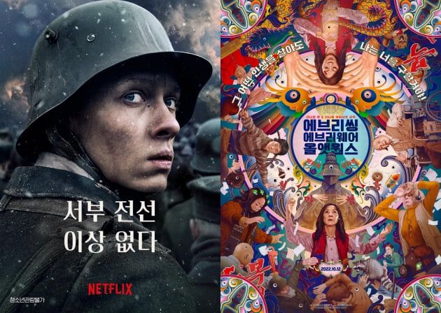 '에브리씽 에브리웨어 올 앳 원스'(감독 다니엘 콴-다니엘 쉐이너트)가 작품상, 감독상, 여우주연상 등 총 11개 부문에 걸쳐 최다 노미네이트 돼 눈길을 끈다. 거장 스티븐 스필버그의 '더 파벨만스'를 비롯해 넷플릭스 영화 '서부 전선 이상 없다'(감독 에드워드 버), 흥행 기록을 세운 '아바타: 물의 길'(감독 제임스 카메론)과 '탑건: 매버릭'(감독 조셉 코신스키) 등 쟁쟁한 영화들이 후보에 올랐다.