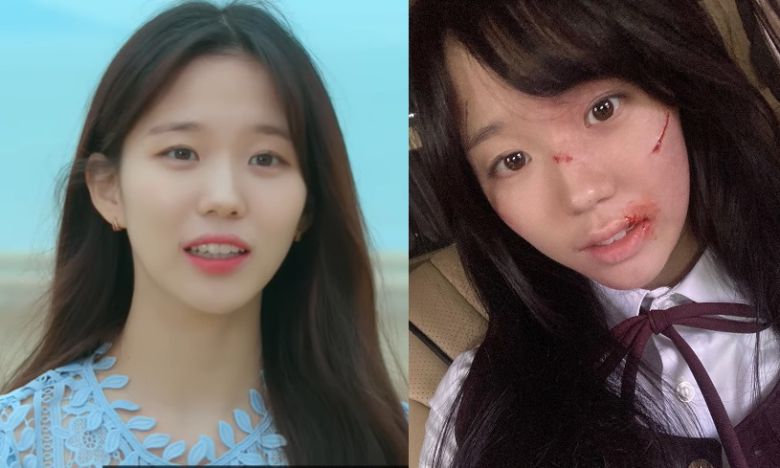 또한 학교폭력 피해자인 역할 소화를 위해 상처투성이 분장을 한 모습을 공개해 팬들의 마음을 울렸다.