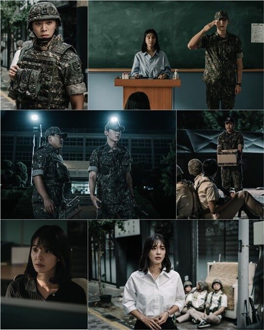 그런 가운데 공개된 사진 속 이춘호, 김원빈, 박은영의 모습이 기대감을 더한다. 사상 초유의 국방 위기 상태에 ‘펜’ 대신 ‘총’을 들게 된 3학년 2반 학생들. 하루아침에 학교는 훈련 장소로 바뀌고 학생들은 방과 후 전쟁활동에 돌입한다.