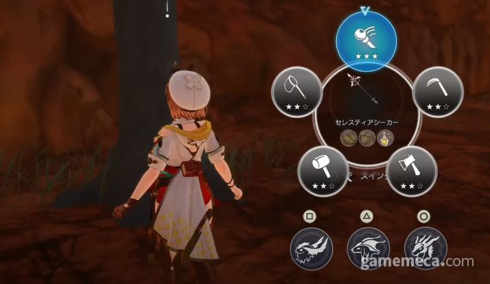오래 전부터 아틀리에 시리즈는 연금술 RPG라는 독특한 장르명을 내세워왔다. 다양한 소재들을 채집하고, 각종 포션과 아이템들을 만들며 즐기는 연금술 시스템은 아틀리에 시리즈를 상징하는 요소다. 마찬가지로 이번 3편도 연금술에 담긴 개발진의 진심을 느낄 수 있다. 넓어진 월드에 맞춰 이동하면서 채집이 가능하도록 바뀌었고, 열쇠를 사용해 결계를 뚫고 들어가면 특별한 소재를 얻을 수 있는 시스템도 추가됐다. 이렇게 모은 재료들은 포션과 장비, 열쇠 등 다양한 아이템 제작에 사용된다.
