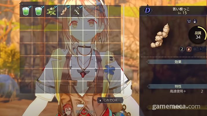 더불어 이번 작품에서는 독특한 아이템을 만들 수 있는 시스템인 ‘링크 콜’이 추가됐다. 회복 포션에 공격력 상승이나 빙결 속성 등을 추가할 수 있는 방식으로, 자신만의 아이템을 만드는 것이 가능하다. 물론, 이러한 조합 시스템이 꼭 즐거운 것만은 아니다. 복잡하게 느낄지도 모르는 이들을 위해 게임 내에는 기본적인 소재만으로도 아이템을 제작할 수 있도록 되어있다. 여기에 추가할 옵션을 자동으로 추천해주는 기능도 함께 마련됐다.