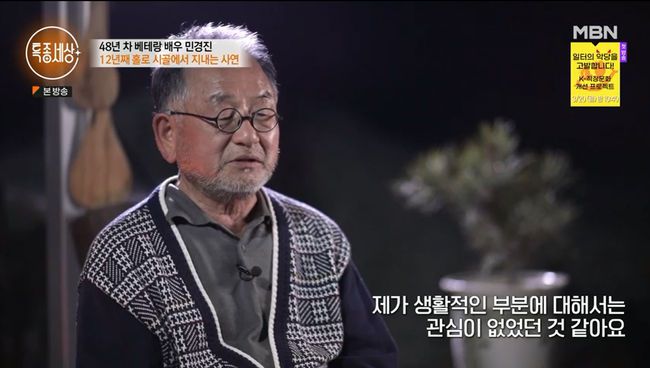 이날 민경진은 직접 담근 장아찌로 식사를 하며 평화로운 전원 생활을 즐기는 모습을 공개했다. 민경진은 12년 째 홀로 시골에 살고 있다고 말해 눈길을 끌었다.