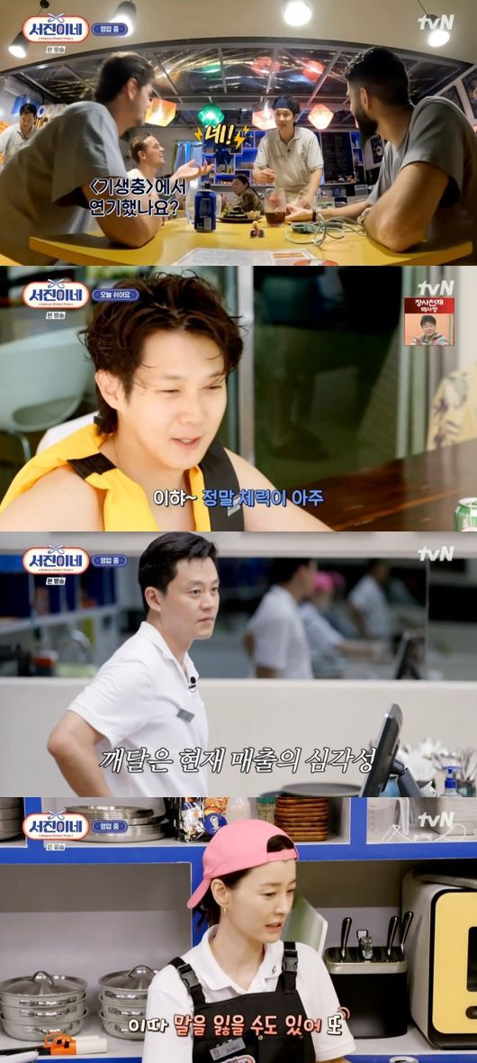 그러던 중 최우식은 ‘기생충’을 본 손님들을 만나게 됐다. 홀에서 서빙하는 최우식을 본 세 사람의 외국인 손님들 중 ‘기생충’에 나온 모습을 기억해낸 것. 손님들은 최우식에게 ‘기생충’에 나온 배우가 맞냐고 물었고, 최우식은 부끄러워하면서 답했다. 손님들은 “‘기생충’은 정말 좋은 영화”라며 칭찬을 아끼지 않았다.